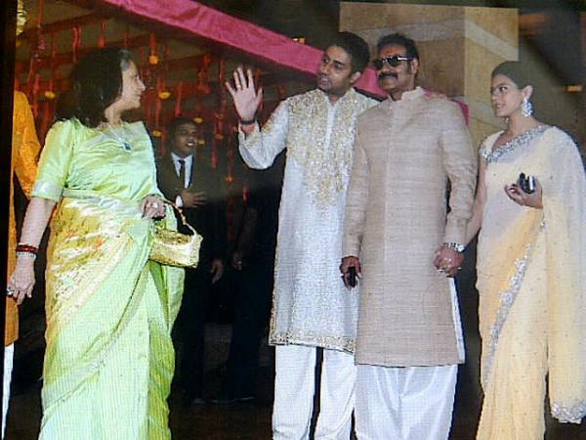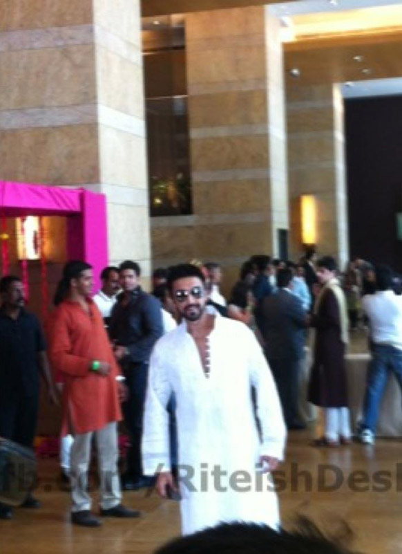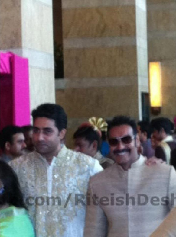 Bollywood stars Ritesih Deshmukh and Genelia D’souza got married in Mumbai today. The event was attended by a host of celebrities from the Tinsel Town as well as from the Neta Nagri. Prominent celebrities who attended the ceremony were Shahrukh Khan, Akshay Kumar, Ajay Devgn, Abhishek Bachchan,   politicos like Sharad Pawar and Raj Thackrey.Riteish donned a cream sherwani andchuridar where as Genelia was draped in bright red saree designed by Neeta Lulla. We present the photo gallery comprising the pictures of the event. Take a look